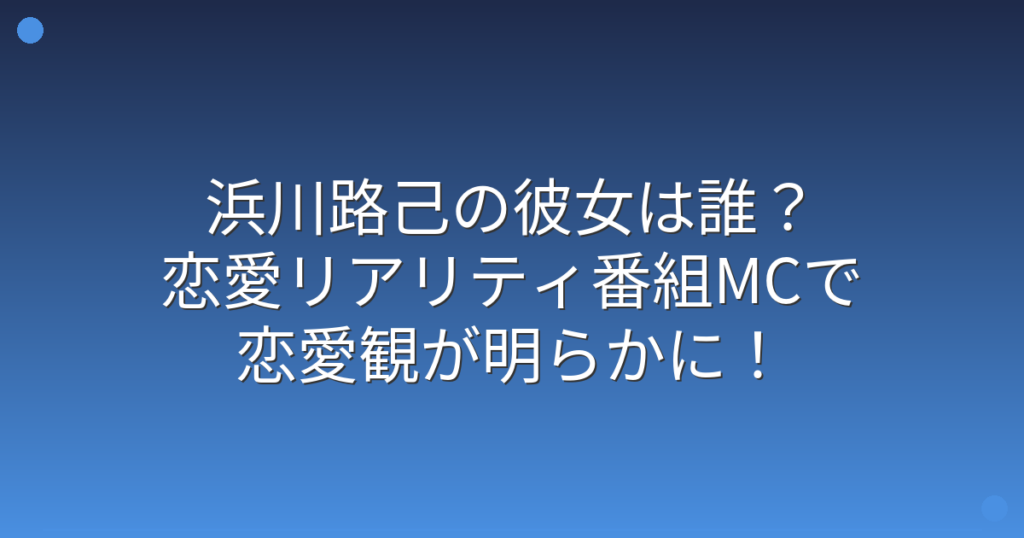 浜川路己の彼女は誰?恋愛リアリティ番組MCで恋愛観が明らかに!