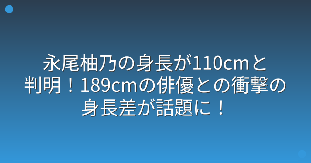 永尾柚乃の身長が110cmと判明!189cmの俳優との衝撃の身長差が話題に!