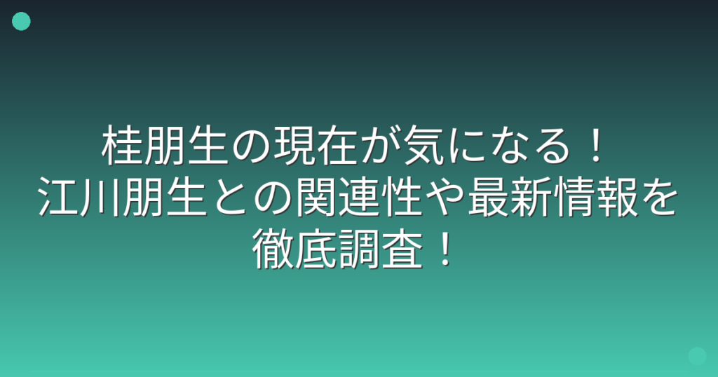 桂朋生の現在が気になる!江川朋生との関連性や最新情報を徹底調査!
