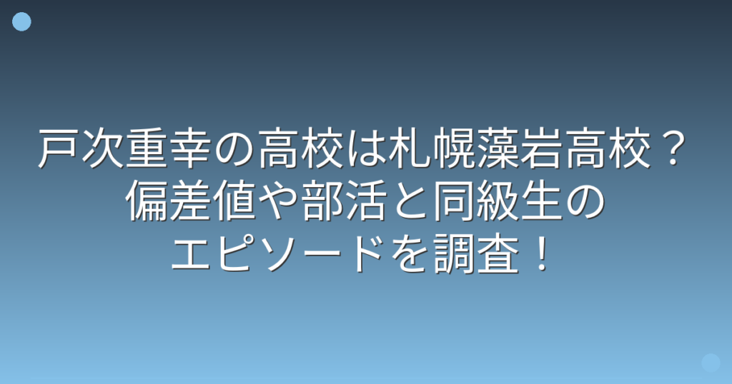 戸次重幸の高校は札幌藻岩高校?偏差値や部活と同級生のエピソードを調査!