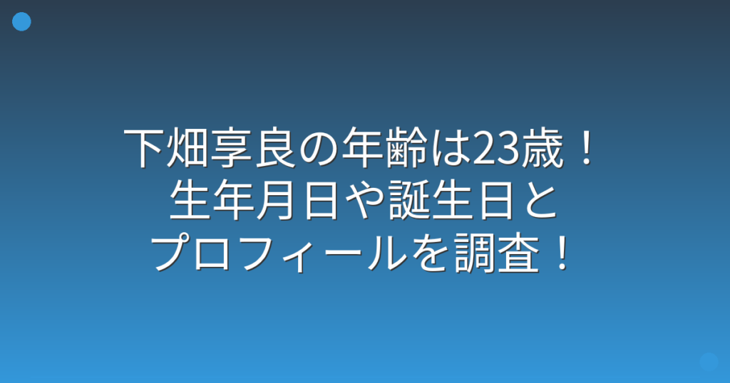 下畑享良の年齢は23歳!生年月日や誕生日とプロフィールを調査!