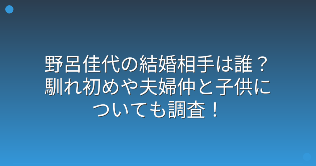 野呂佳代の結婚相手は誰?馴れ初めや夫婦仲と子供についても調査!