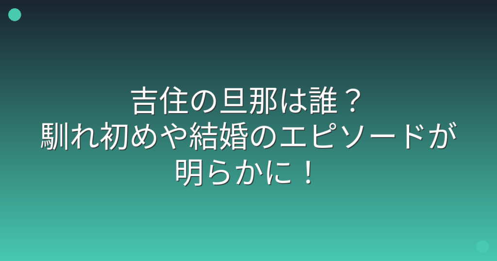 吉住の旦那は誰?馴れ初めや結婚のエピソードが明らかに!