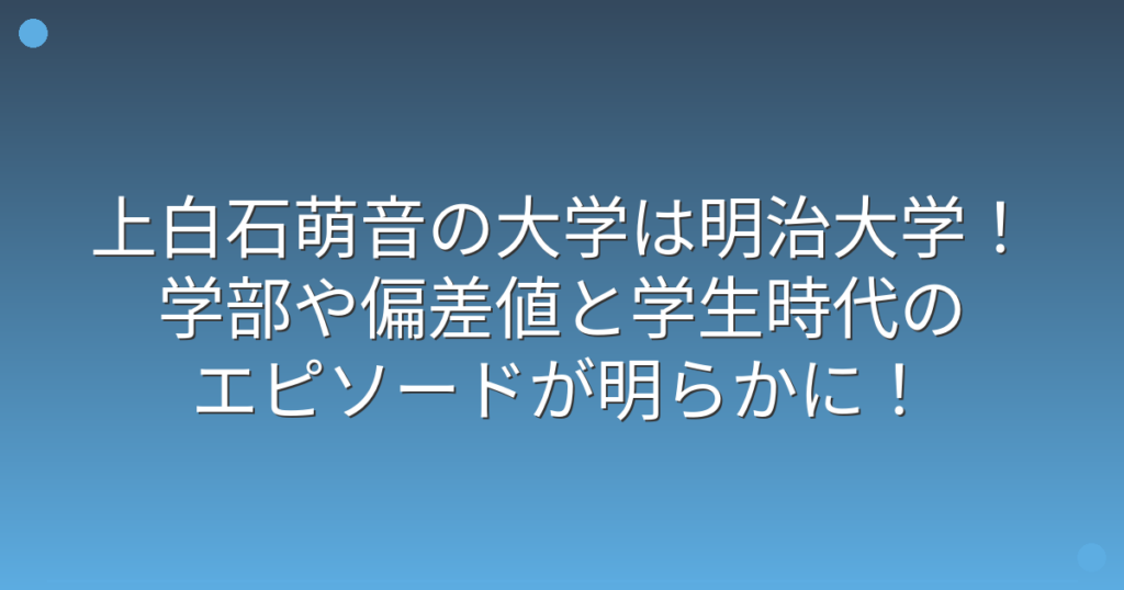 女優として数々の作品で活躍する上白石萌音さんの大学について、ファンの間で話題になっていますね。 実力派女優として知られる上白石萌音さんですが、どこの大学に通っていたのか気になる方も多いのではないでしょうか。 そこで今回は、上白石萌音さんの... -