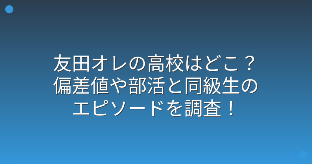 友田オレの高校はどこ?偏差値や部活と同級生のエピソードを調査!