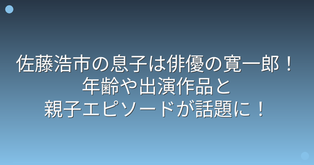 俳優の佐藤浩市さんといえば、日本を代表する名俳優として知られていますね。 そんな佐藤浩市さんの息子さんも俳優として活躍されていることが話題になっています。 そこで今回は、佐藤浩市さんの息子さんについて、名前や年齢、出演作品、そして親子エピ... -