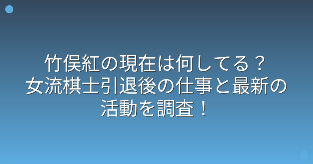 竹俣紅の現在は何してる?女流棋士引退後の仕事と最新の活動を調査!