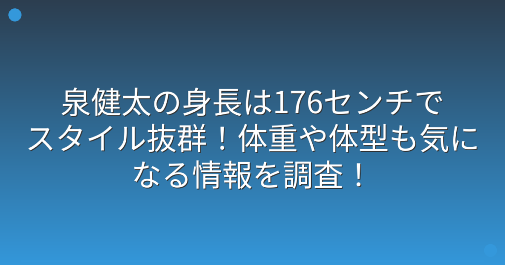 泉健太の身長は176センチでスタイル抜群!体重や体型も気になる情報を調査!