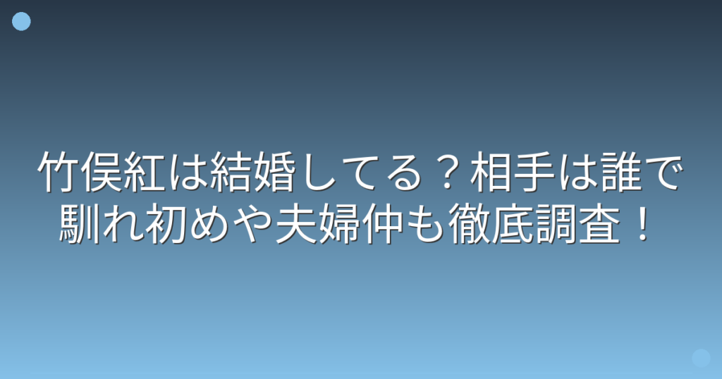 竹俣紅は結婚してる?相手は誰で馴れ初めや夫婦仲も徹底調査!