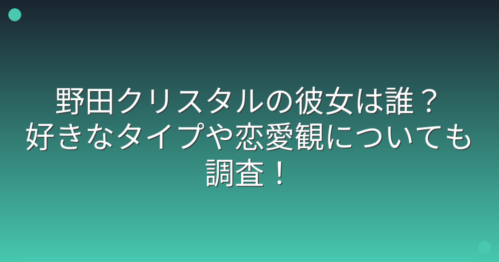 野田クリスタルの彼女は誰?好きなタイプや恋愛観についても調査!