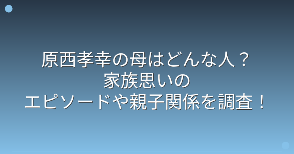 原西孝幸の母はどんな人?家族思いのエピソードや親子関係を調査!