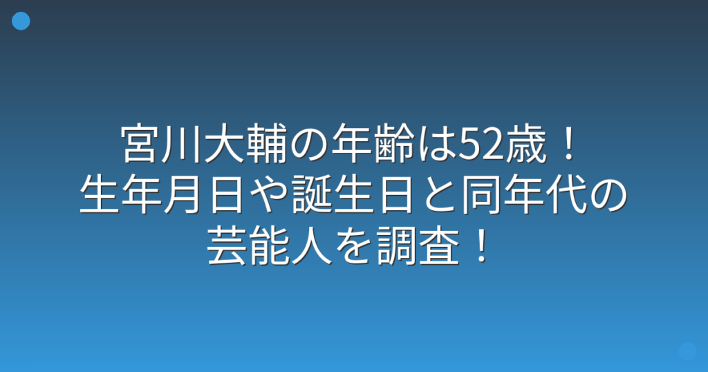 お笑い芸人として長年活躍している宮川大輔さんですが、その年齢について気になっている方も多いのではないでしょうか。 テレビで見ない日はないほど活躍されている宮川大輔さんですが、実際の年齢や生年月日について詳しく知りたいという声が多く聞かれま... -
