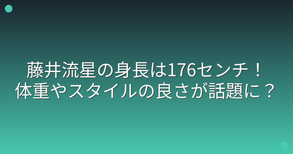 藤井流星の身長は176センチ!体重やスタイルの良さが話題に?