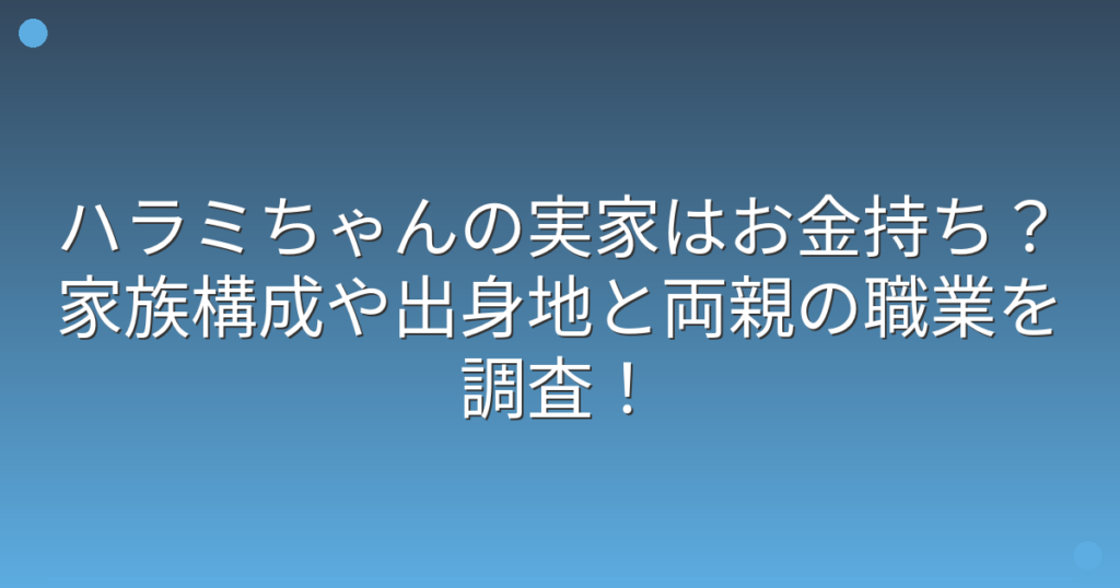 ハラミちゃんの実家はお金持ち?家族構成や出身地と両親の職業を調査!
