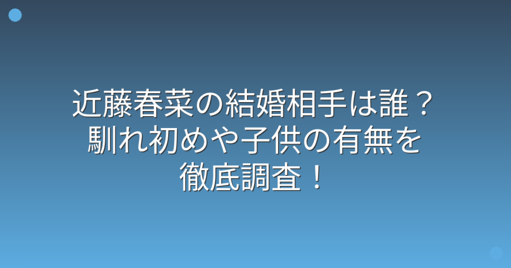 お笑いコンビ・ハリセンボンの近藤春菜さんの結婚について、ファンの間で話題になっていますね。 テレビで見ない日はないほど活躍している近藤春菜さんですが、プライベートな結婚事情について気になっている方も多いのではないでしょうか。 そこで今回は... -