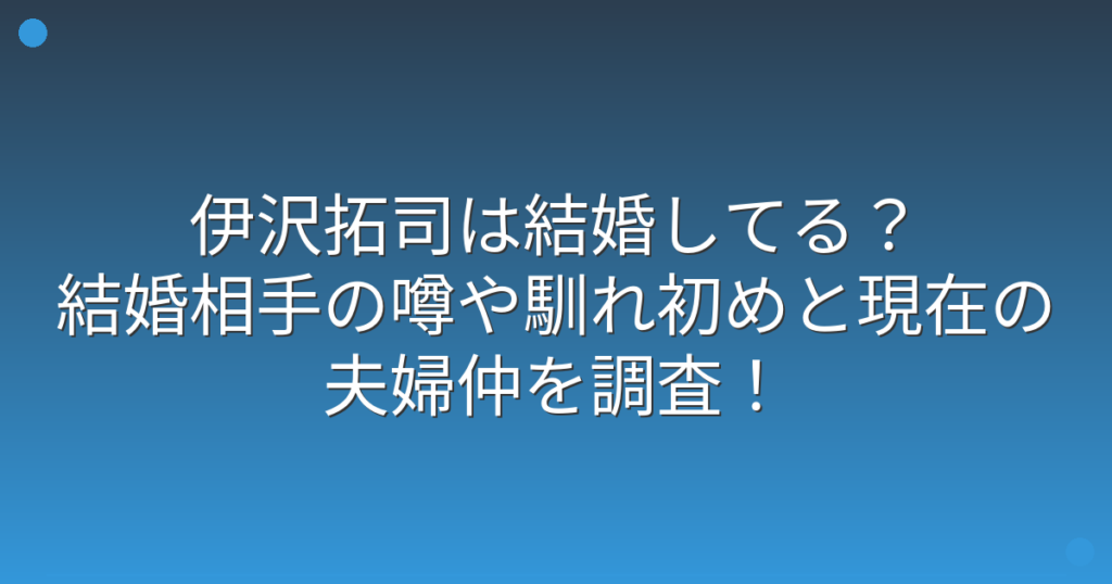 伊沢拓司は結婚してる?結婚相手の噂や馴れ初めと現在の夫婦仲を調査!