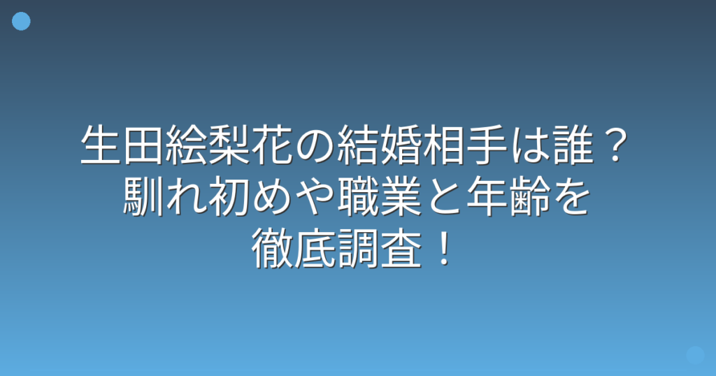 生田絵梨花の結婚相手は誰?馴れ初めや職業と年齢を徹底調査!