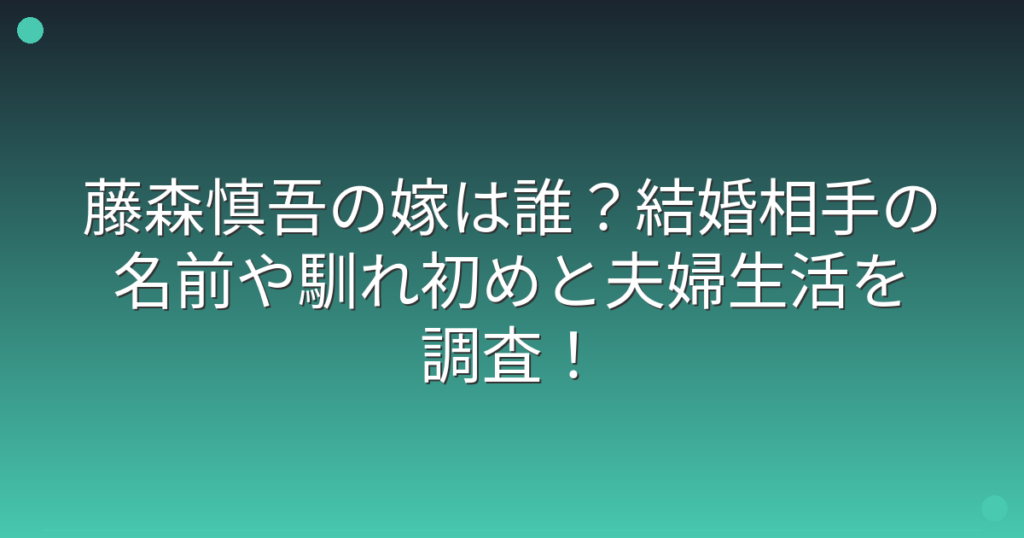 藤森慎吾の嫁は誰?結婚相手の名前や馴れ初めと夫婦生活を調査!