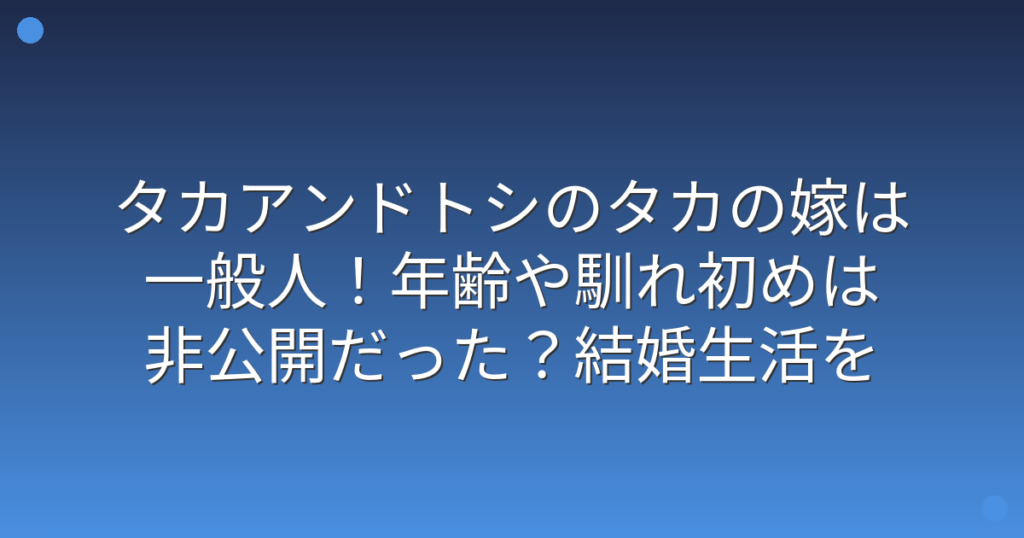 タカアンドトシのタカの嫁は一般人!年齢や馴れ初めは非公開だった?結婚生活を徹底調査!