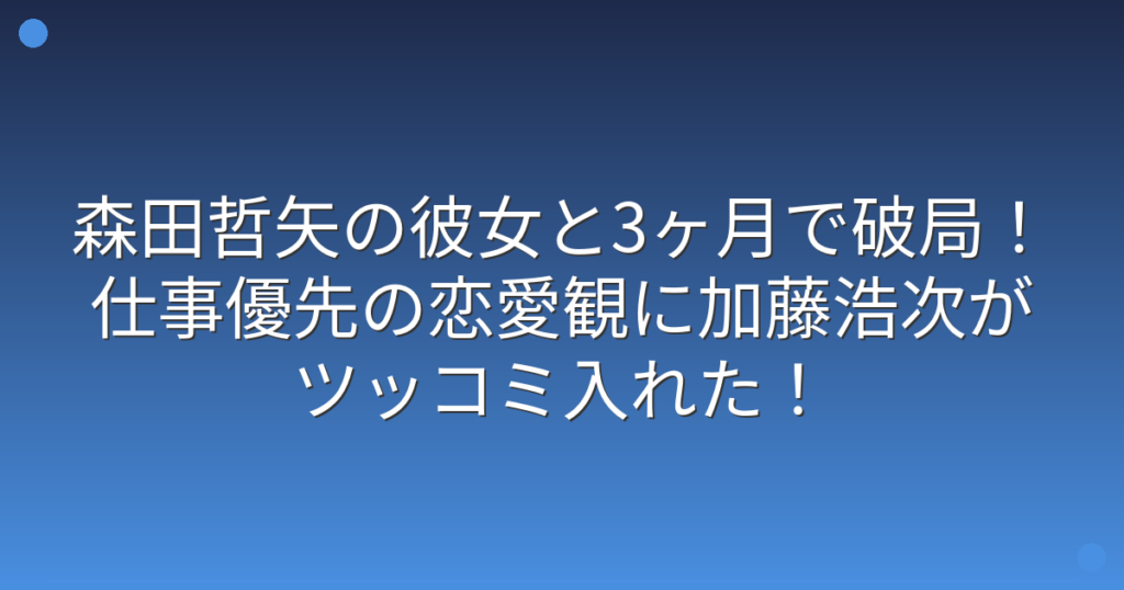 森田哲矢の彼女と3ヶ月で破局!仕事優先の恋愛観に加藤浩次がツッコミ入れた!