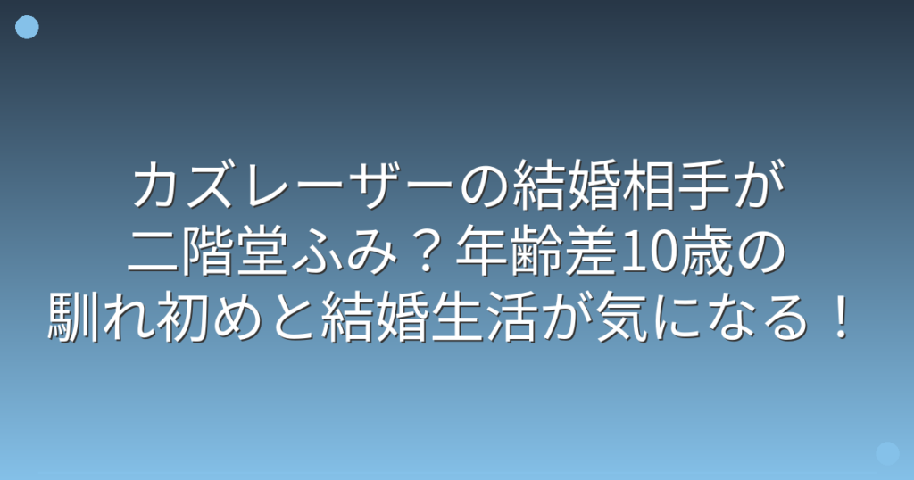 お笑いコンビ・メイプル超合金のカズレーザーさんと女優の二階堂ふみさんの電撃結婚が、芸能界で大きな話題となっています。 知的なキャラクターで人気のカズレーザーさんと実力派女優の二階堂ふみさんの組み合わせに、多くの方が興味を持たれているようで... -