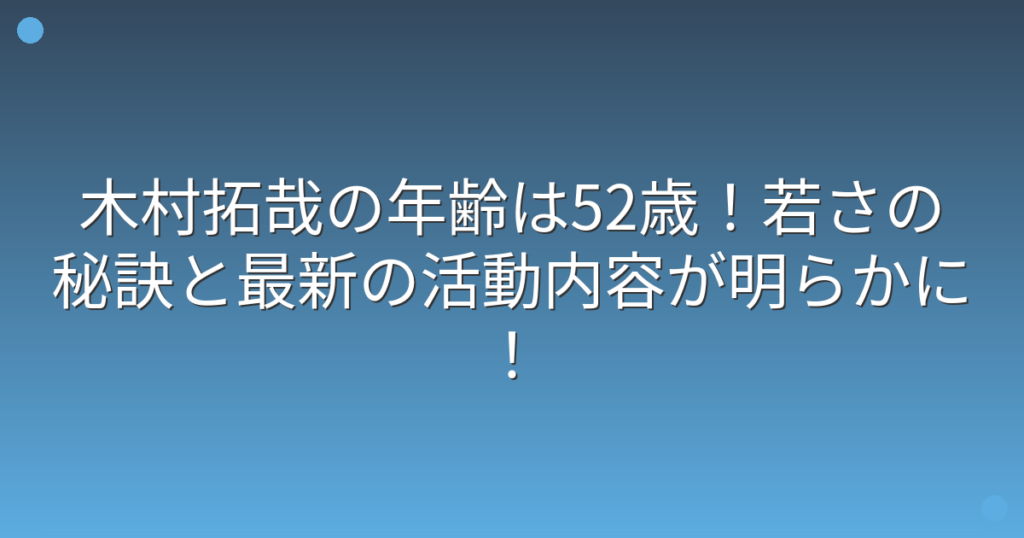 木村拓哉の年齢は52歳!若さの秘訣と最新の活動内容が明らかに!