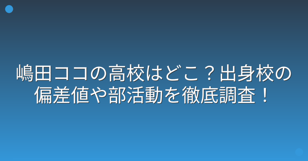 嶋田ココの高校はどこ?出身校の偏差値や部活動を徹底調査!