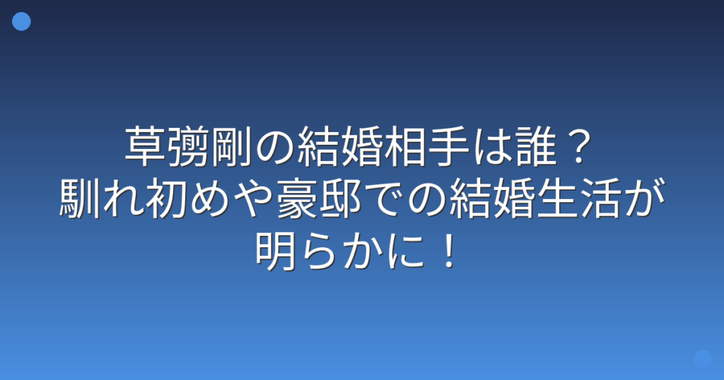 元SMAPのメンバーで俳優として活躍する草彅剛さんの結婚が話題になっていますね。 2020年に結婚を発表した草彅剛さんですが、お相手の女性や馴れ初め、そして現在の結婚生活について気になる方も多いのではないでしょうか。 そこで今回は、草彅剛さんの結... -