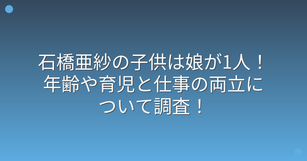 石橋亜紗の子供は娘が1人!年齢や育児と仕事の両立について調査!