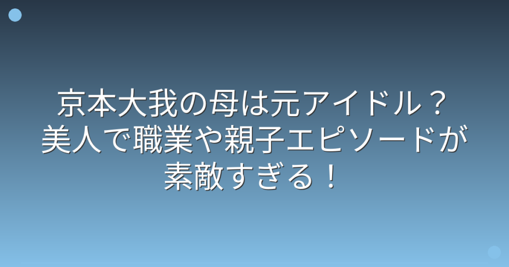 京本大我の母は元アイドル?美人で職業や親子エピソードが素敵すぎる!