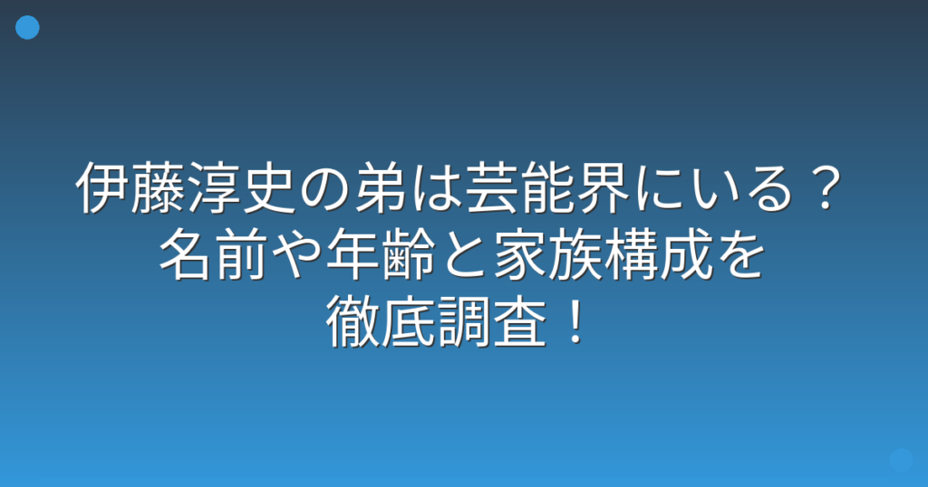 俳優の伊藤淳史さんと言えば、子役時代から活躍し、数々のドラマや映画で印象的な演技を見せてくれる実力派俳優として知られていますね。 そんな伊藤淳史さんですが、弟さんについて気になっている方が多いようです。 芸能人の兄弟が同じく芸能界で活躍し...
