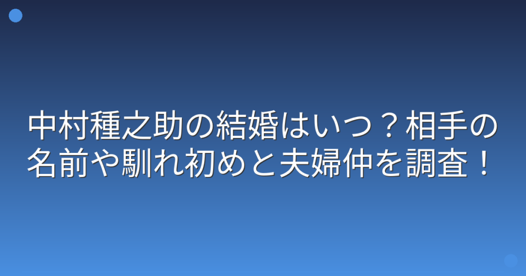 中村種之助の結婚はいつ?相手の名前や馴れ初めと夫婦仲を調査!