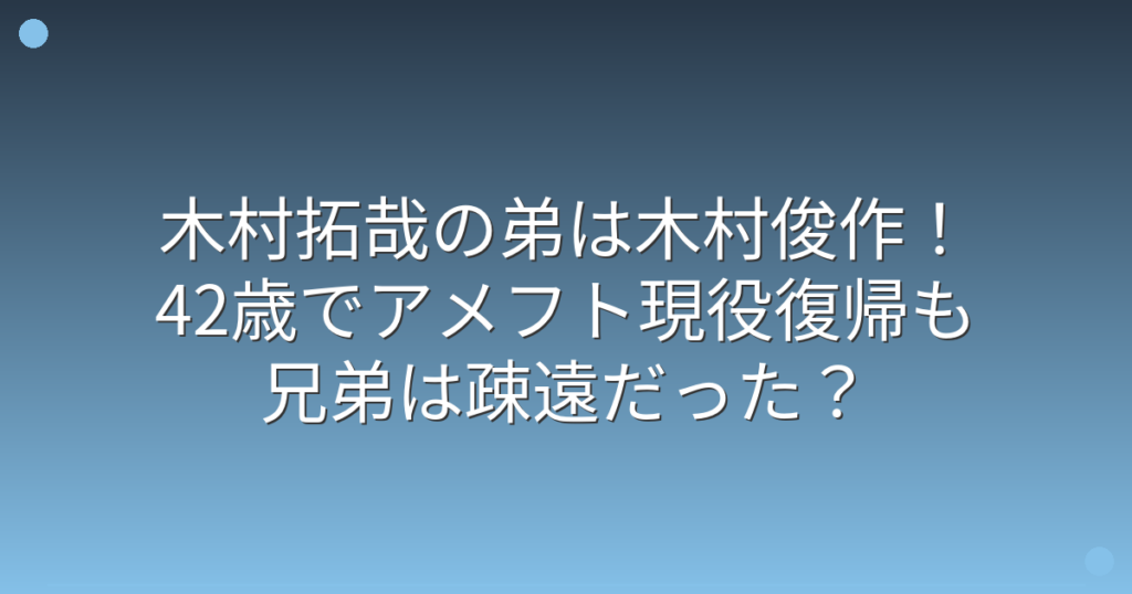 木村拓哉の弟は木村俊作!42歳でアメフト現役復帰も兄弟は疎遠だった?