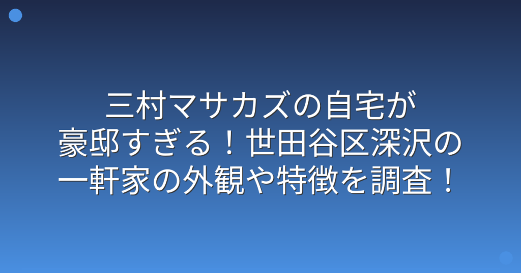 三村マサカズの自宅が豪邸すぎる!世田谷区深沢の一軒家の外観や特徴を調査!