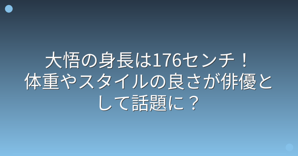 大悟の身長は176センチ!体重やスタイルの良さが俳優として話題に?