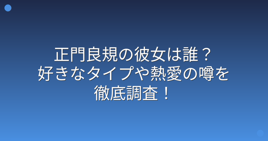 正門良規の彼女は誰?好きなタイプや熱愛の噂を徹底調査!