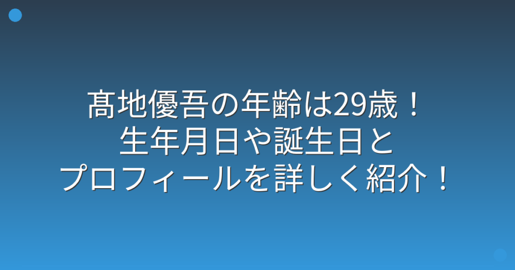 髙地優吾の年齢は29歳!生年月日や誕生日とプロフィールを詳しく紹介!