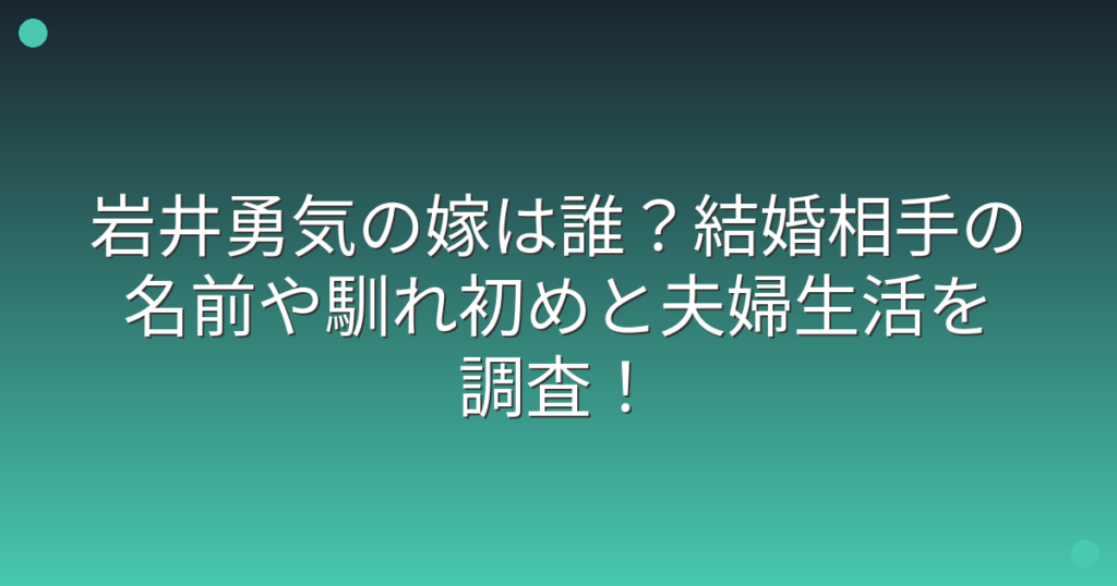 岩井勇気の嫁は誰?結婚相手の名前や馴れ初めと夫婦生活を調査!