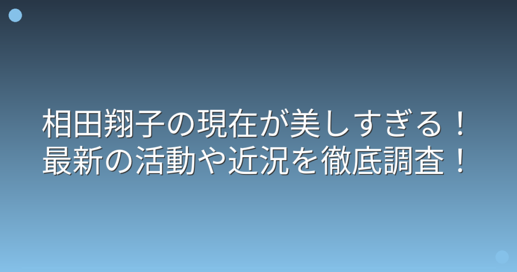 1980年代から活躍し続けている相田翔子さんが、現在も変わらぬ美しさで話題になっていますね。 Winkとしてデビューしてから30年以上が経過した今、相田翔子さんはどのような活動をしているのでしょうか。 そこで今回は、相田翔子さんの現在の活動や近況、... -