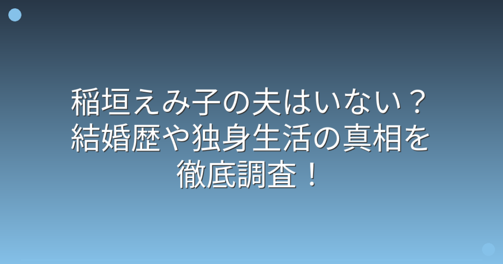 稲垣えみ子の夫はいない?結婚歴や独身生活の真相を徹底調査!