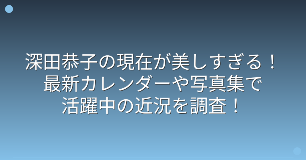 女優の深田恭子さんが、42歳を迎えた現在も変わらぬ美しさで話題になっていますね。 2026年版カレンダーの発売や写真集のリリースなど、精力的に活動を続けている深田恭子さんですが、現在どのような活動をしているのか気になる方も多いのではないでしょう... -