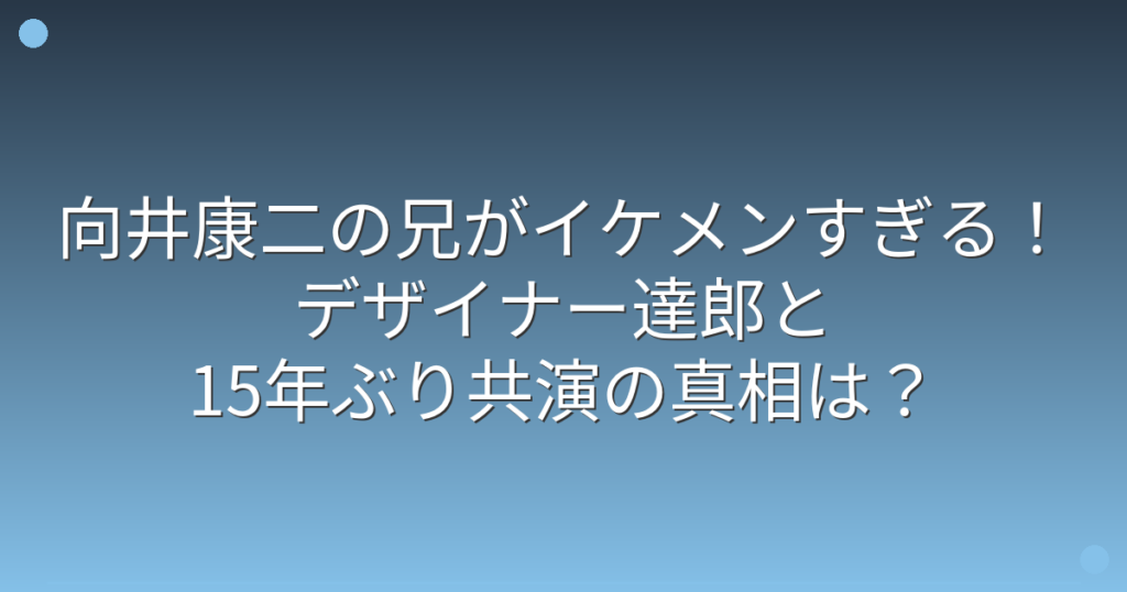 向井康二の兄がイケメンすぎる!デザイナー達郎と15年ぶり共演の真相は?