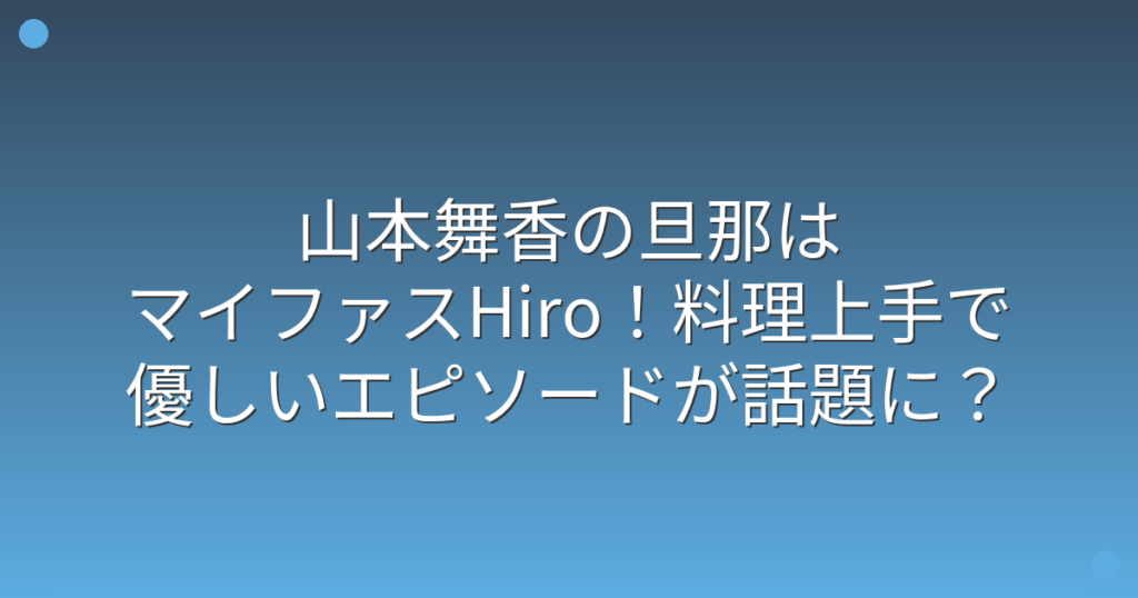 山本舞香の旦那はマイファスHiro!料理上手で優しいエピソードが話題に?