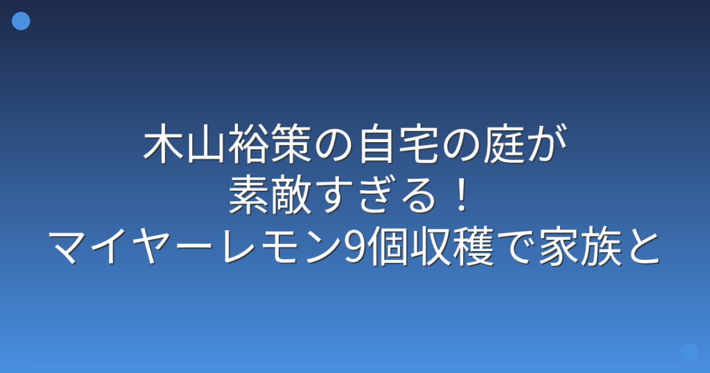 木山裕策の自宅の庭が素敵すぎる!マイヤーレモン9個収穫で家族との温かい生活も明らかに!