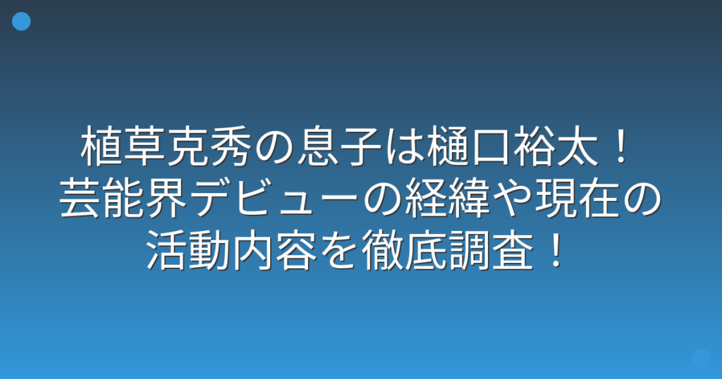 植草克秀の息子は樋口裕太!芸能界デビューの経緯や現在の活動内容を徹底調査!