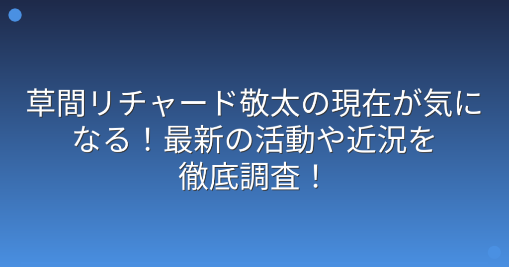 草間リチャード敬太さんの現在が話題になっていますね。 かつて注目を集めた草間リチャード敬太さんですが、最近の活動や近況について気になっている方も多いのではないでしょうか。 そこで今回は、草間リチャード敬太さんの現在の活動状況や最新情報につ... -
