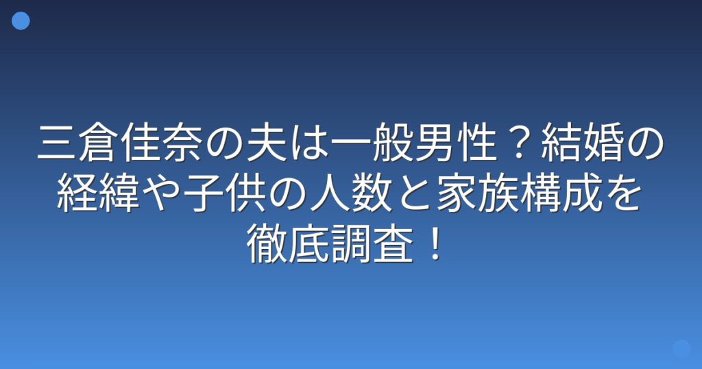 双子タレント「マナカナ」として知られる三倉佳奈さんの夫や家族について、気になっている方も多いのではないでしょうか。 2025年には第2子妊娠を発表し、幸せな家庭を築いている三倉佳奈さんですが、夫はどのような方なのか、結婚の経緯や子供たちのこと... -