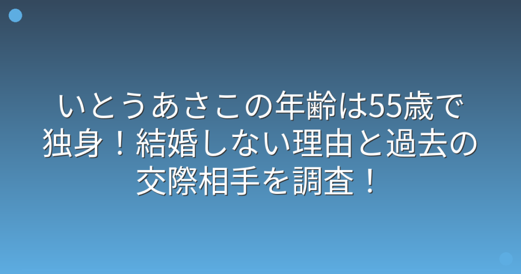 いとうあさこの年齢は55歳で独身!結婚しない理由と過去の交際相手を調査!