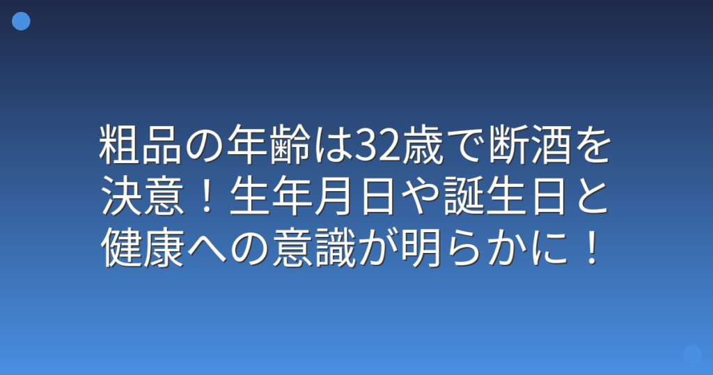 粗品の年齢は32歳で断酒を決意!生年月日や誕生日と健康への意識が明らかに!