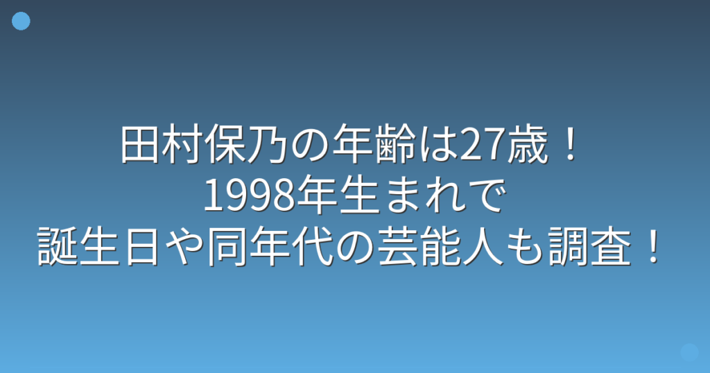 田村保乃の年齢は27歳!1998年生まれで誕生日や同年代の芸能人も調査!